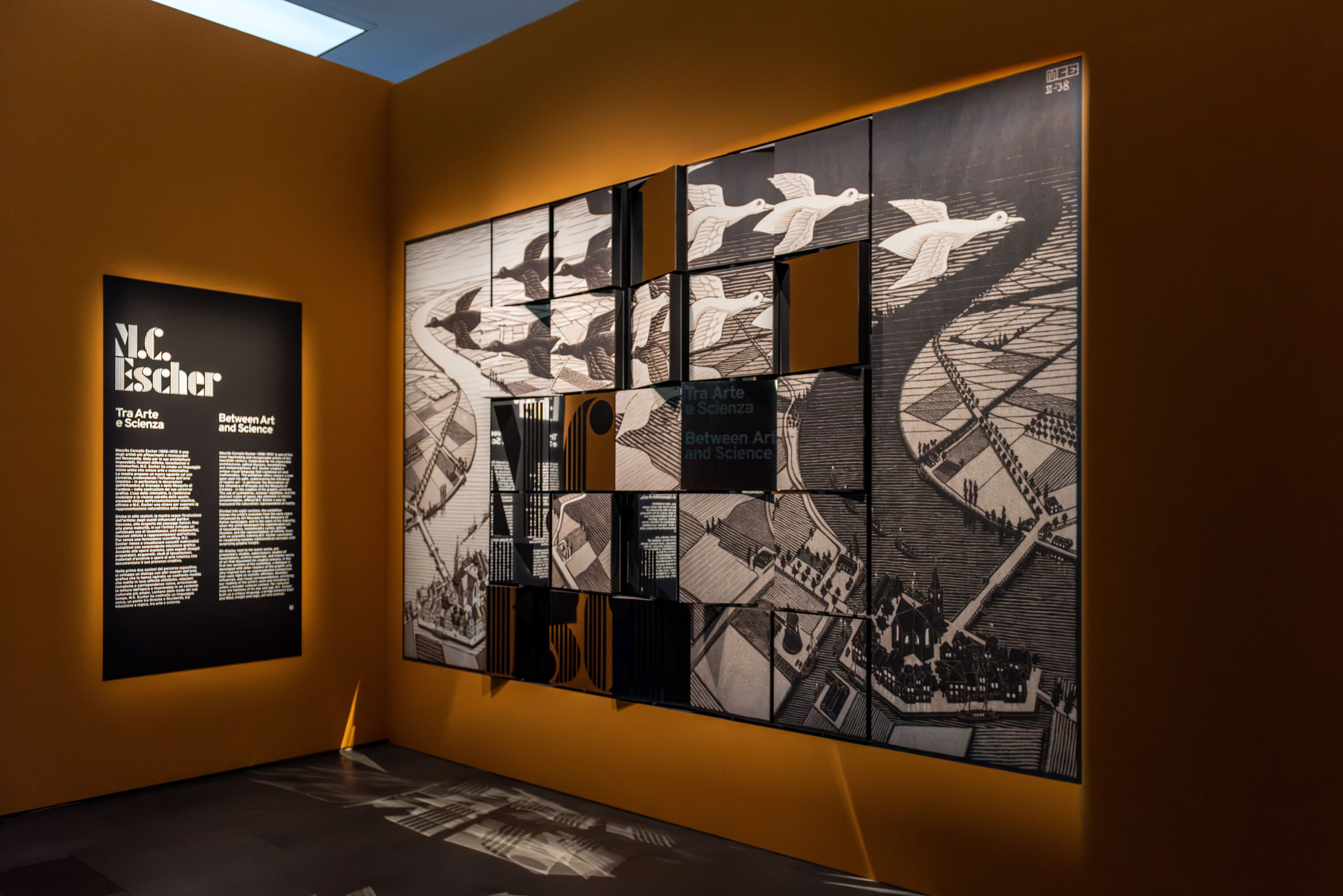 Noto per le sue architetture impossibili, illusioni ottiche, tassellature e metamorfosi, M.C. Escher ha creato un linguaggio visivo unico che unisce arte e matematica. Quella matematica fatta non di astratti ragionamenti degli accademici di professione, ma di un lungo, minuzioso e appassionato lavoro, basato su un approccio più intuitivo e percettivo. In Escher arte e scienza si fondono in una visione rigorosa, inventiva e profondamente personale, in un fil rouge che caratterizza fortemente la mostra. Con uno sguardo inedito, M.C. Escher. Tra arte e scienza indaga, inoltre, l’influsso dell’arte islamica – in particolare le decorazioni dell’Alhambra di Granada e della Mezquita di Cordova – nella costruzione dell’universo grafico che caratterizza lo stile distintivo dell’artista olandese.